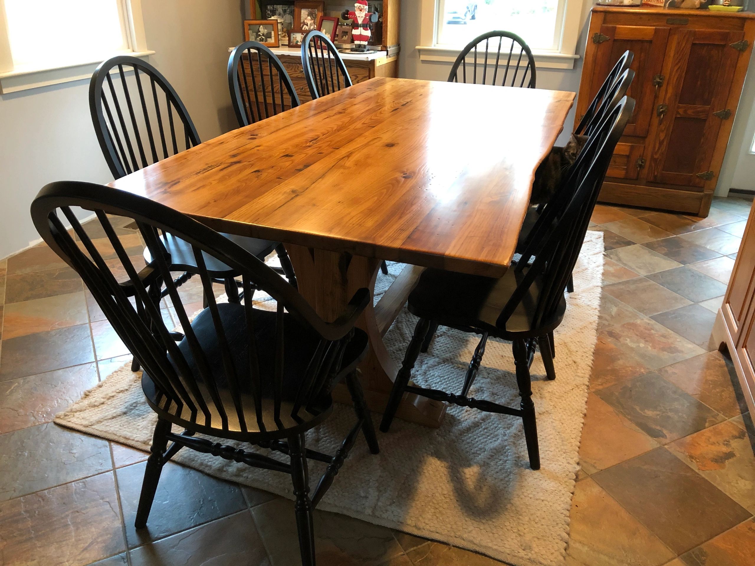 The Windsor-Style Chair has turned legs and is more of traditional Windsor look. $235 each with table purchase, $285 each without table purchase